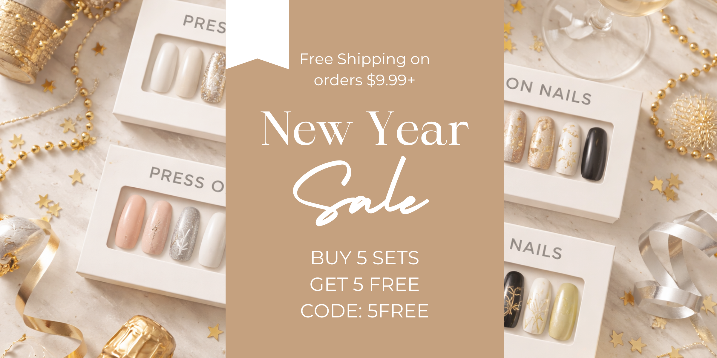 Celestial Glamour Short Almond Beige with Gold Accents and Starry Design Press-On Nail Set