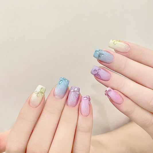 Rainbow Dream Ombre Medium Square Multi-Gradient Press On Nail Set with High Gloss Finish