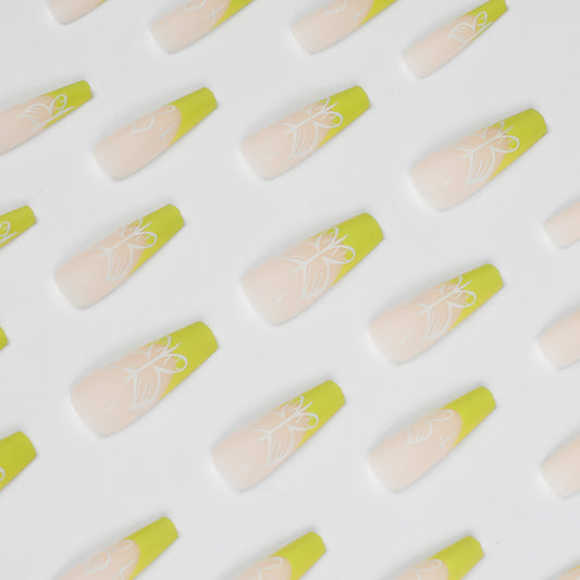 Migrate Long Coffin Green French Tips St. Patrick's Day Press On Nails