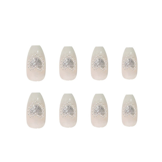 Royal Hearts Short Coffin White Hearts Press On Nails