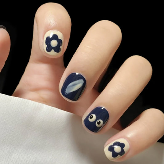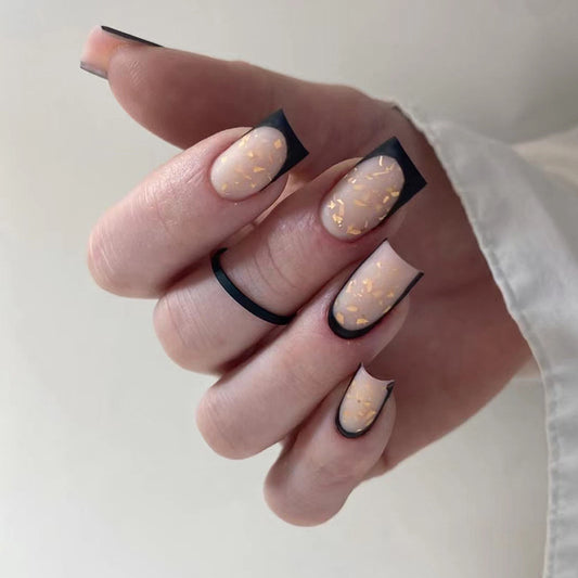 Urban Chic Medium Square Black and Beige Press On Nail Set with Textured Accent Design