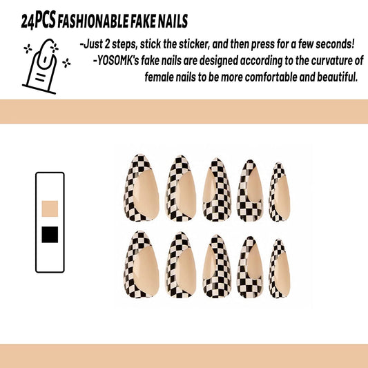 Racerback Chick Long Almond Black Pattern Press On Nails