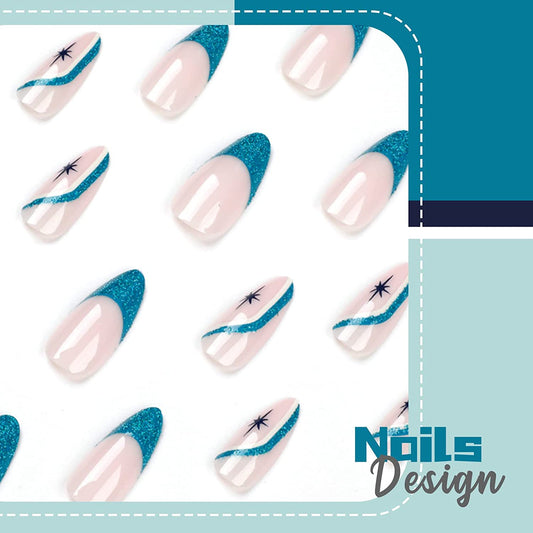 You're So Hot Long Almond Blue Glitter Press On Nails