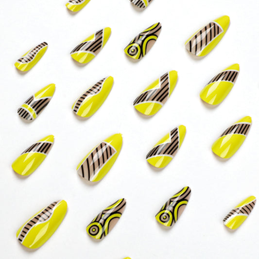 Electrified 80 Short Almond Yellow Bold Press On Nails
