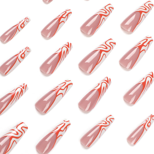Zebra Run Long Coffin Red Animal Pattern Press On Nails