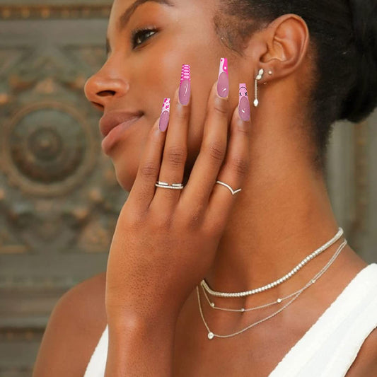 Galaxy Lover Long Almond Purple Glitter Press On Nails