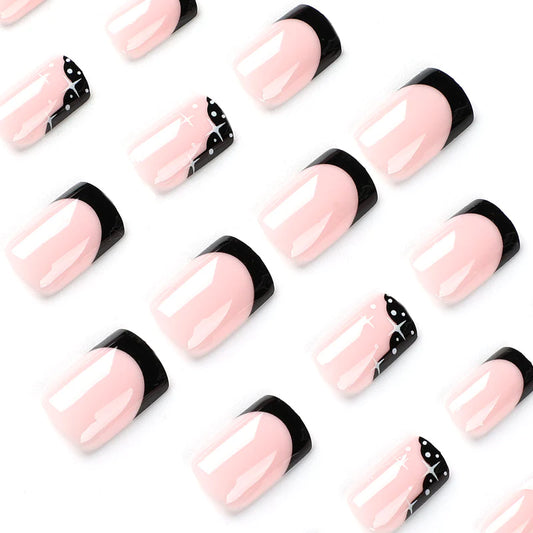 Galaxy Travel Short Square Black Glitter Press On Nails