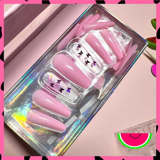 But If I Fly Medium Coffin Pink Bold Press On Nails