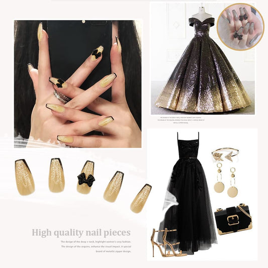 Perfect NYE Long Coffin Gold French Tips Press On Nails