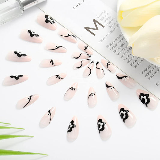 Simple Flower Long Almond Beige Everyday Press On Nails