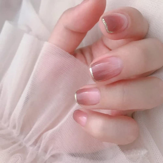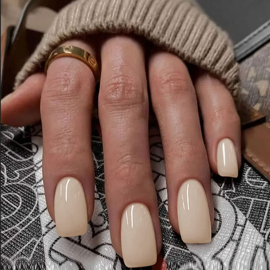 Gilded Short Squoval Beige Everyday Press On Nails