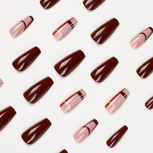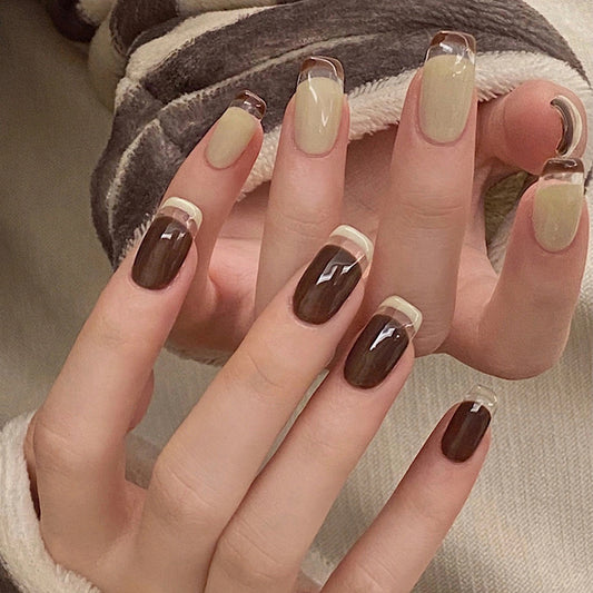 Skip A Beat Long Square Brown Everyday Press On Nails