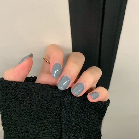 stream Short Oval Blue Everyday Press On Nails