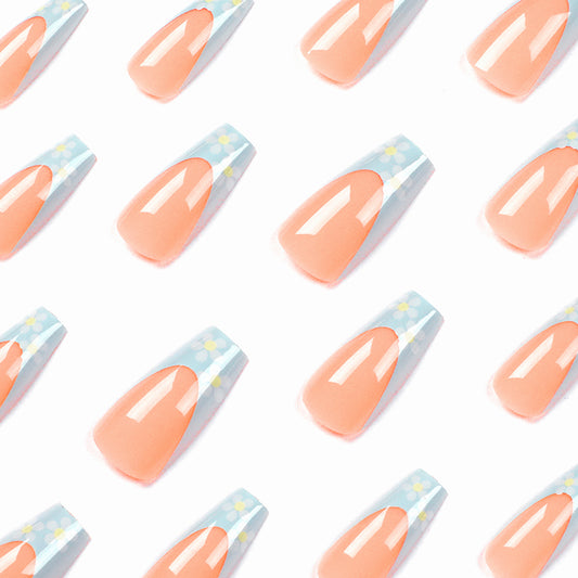Show Me The Flowers Long Almond Beige Spring Press On Nails
