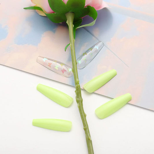 Peace Out Cocoon Long Coffin Green Spring St. Patrick's Day Press On Nails