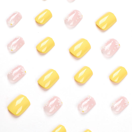 Blooming Spring Short Square Yellow Floral Press On Nails