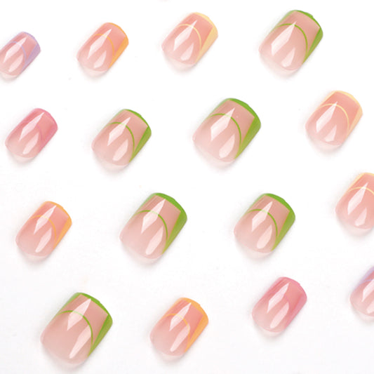 Whimsical Garden Radiant Short Square Pink Green Swirl Pattern Press-On Nail Set