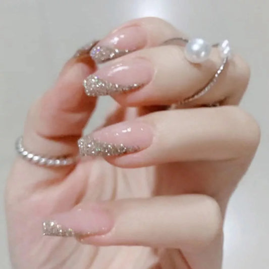Glamorous Dreamy Short Square Soft Pink Glitter Tip Press On Nail Set