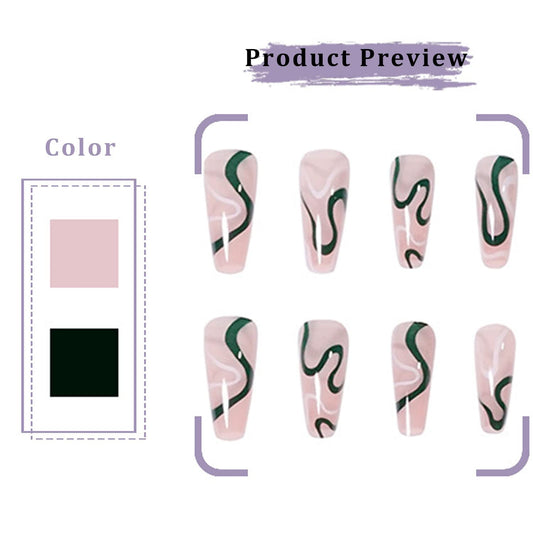 Autumn Waves Long Square Green Fall St. Patrick's Day Press On Nails