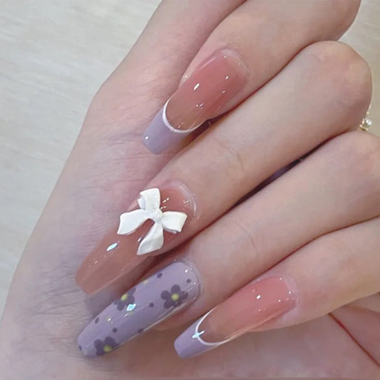 Kiss On The Cheek Long Coffin Purple Cute Press On Nails