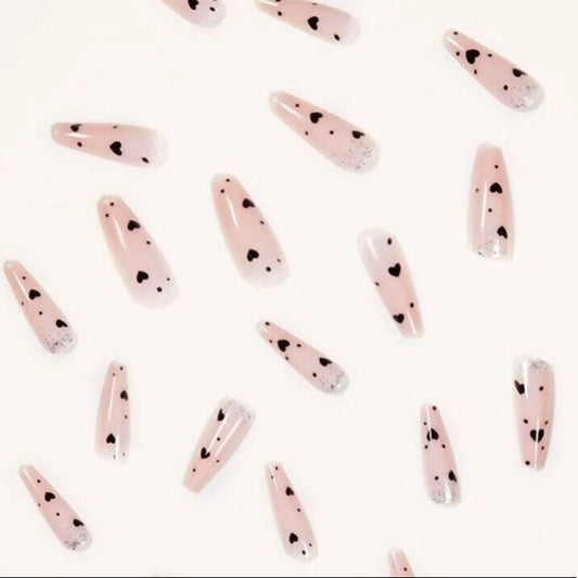 Honey Baby Darling Long Coffin Pink Hearts Press On Nails