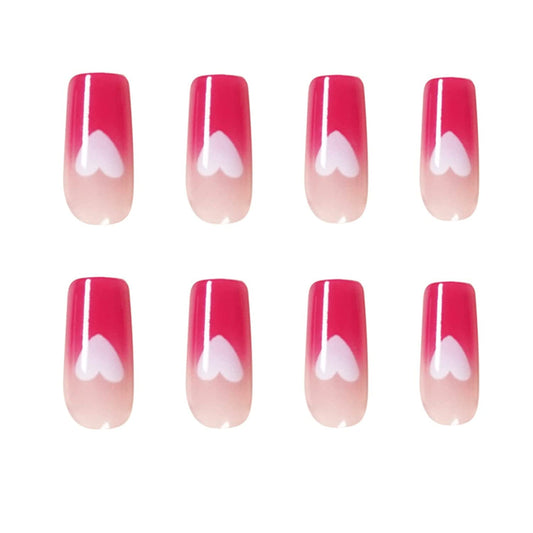 I Heart U Long Square Pink Hearts Press On Nails