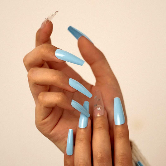 Butterfly Pro Long Coffin Blue Cute Press On Nails