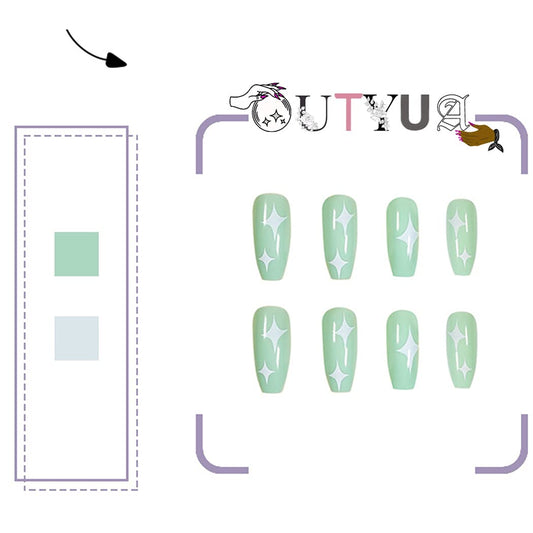 Anime Twinkle Long Coffin Green Pattern St. Patrick's Day Press On Nails