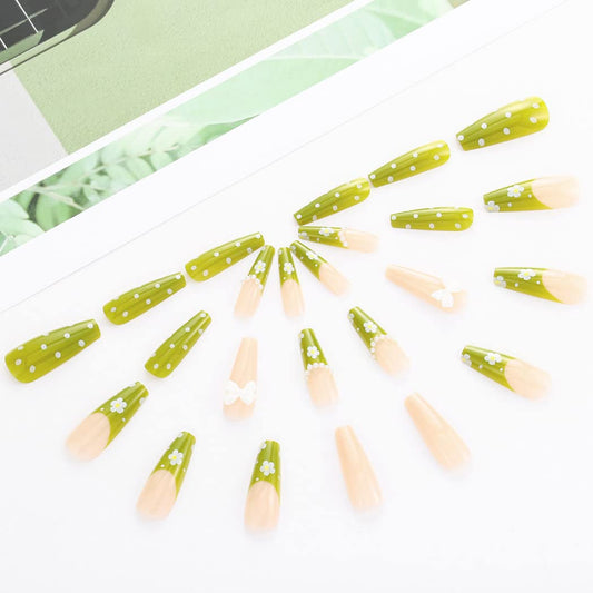 What A Cutie Long Coffin Green Cute St. Patrick's Day Press On Nails