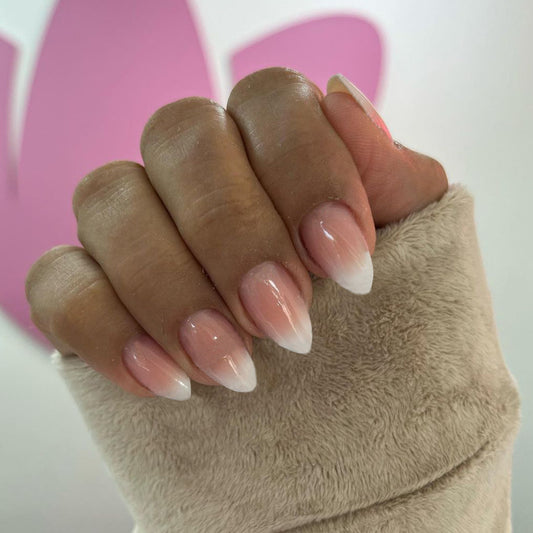 Glamorous Sparkling Almond Shaped Medium Pink Press On Nail Set with Red Glitter Tips for Stunning Manicure Transformation