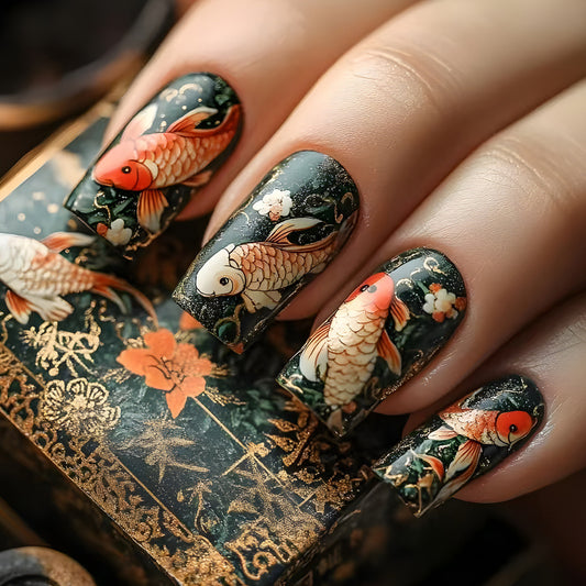 Mermaid Dreams Glossy Short Square Aqua and Pastel Gradient with Shimmering Gold Accents Press On Nail Set