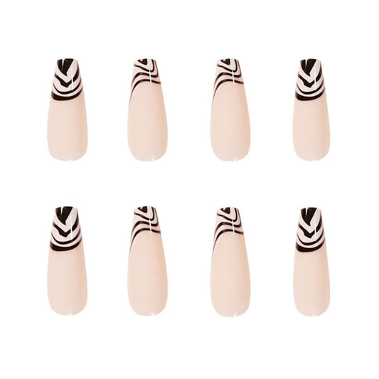 Glamorous Elegance Medium Stiletto Press on Nails in Beige Pink with Unique Geometric Design