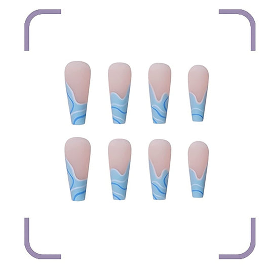 Maybe Wavy Long Square Blue Groovy Press On Nails