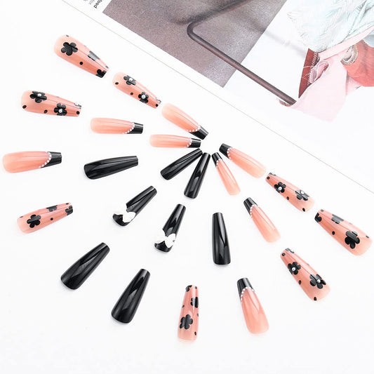 Shady Princess Long Coffin Black Pattern Press On Nails