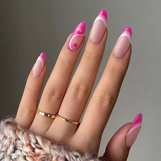 Do You Love Me? Long Almond Pink Cute Press On Nails