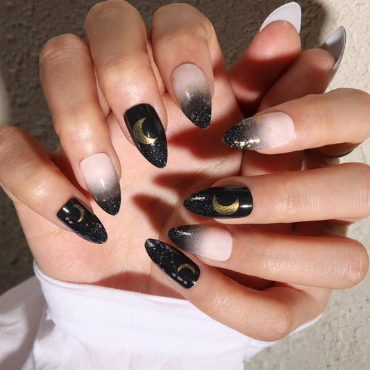 Enchanting Autumn Style Medium Almond Shaped Soft Rose Ombre Glossy Press On Nail Set