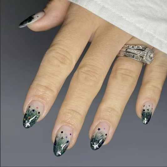 Enchanted Forest Medium Almond Shaped Multi-Colored Nail Set with Scenic Design