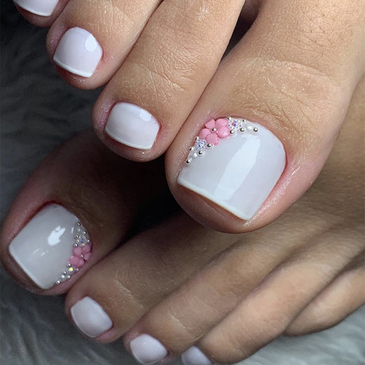 Blossom Dream Press on Nail Set Medium Square Pink with Floral Accents
