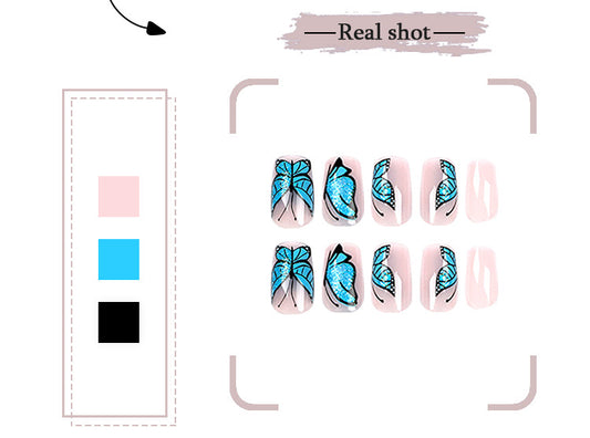 Arctic Butterfly Short Square Blue Spring Press On Nails