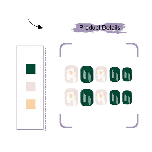 Bella Mia Short Square Green Floral St. Patrick's Day Press On Nails