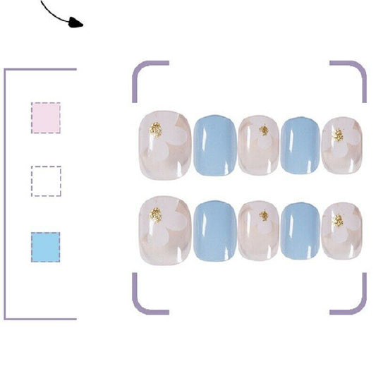 Icing Sugar Flowers Short Squoval Multicolor Spring Press On Nails