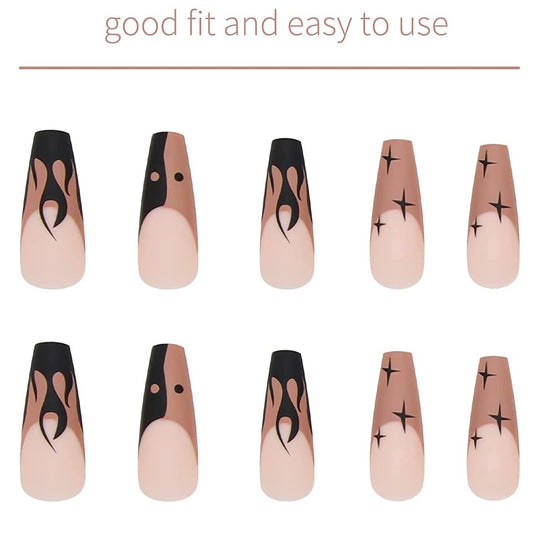 Hot Yin Yang Long Square Black Flames Press On Nails