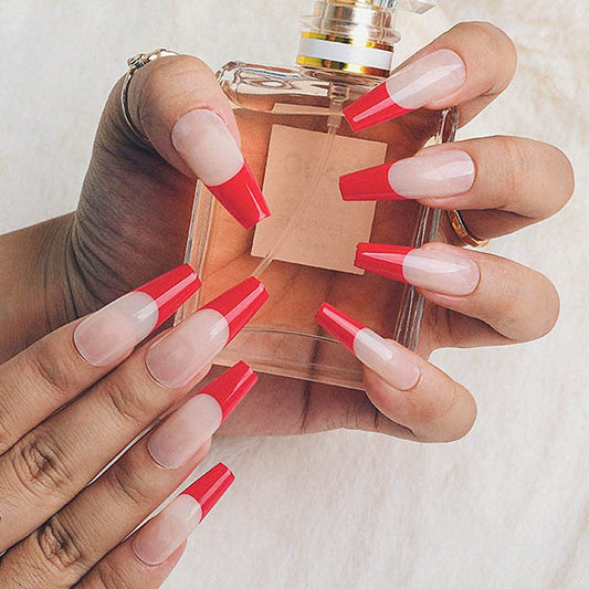 Convertible Long Square Red French Tips Press On Nails