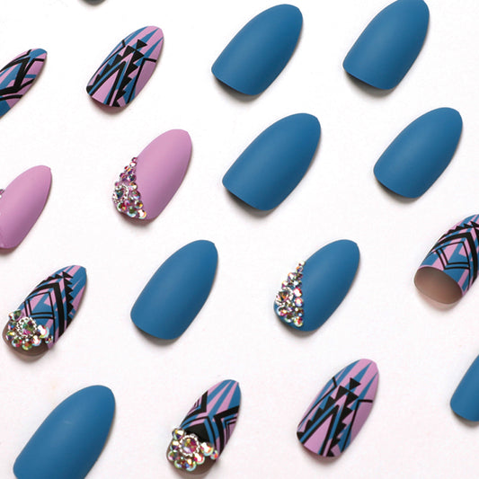 Studded Ruins Short Stiletto Blue Pattern Press On Nails