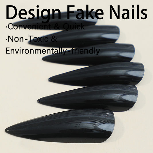 Enchanted Evening Extra Long Stiletto Glossy Black Nails
