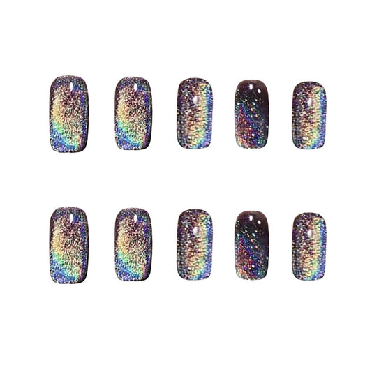 Crazy Chrome Short Coffin Purple Glossy Press On Nails