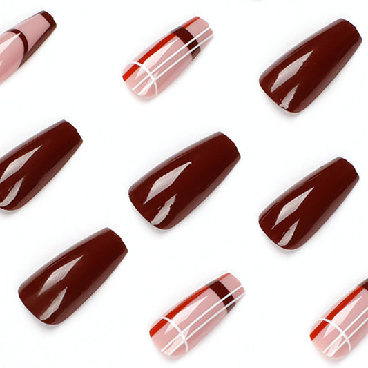 Tasteful Reflects Medium Coffin Brown Everyday Press On Nails
