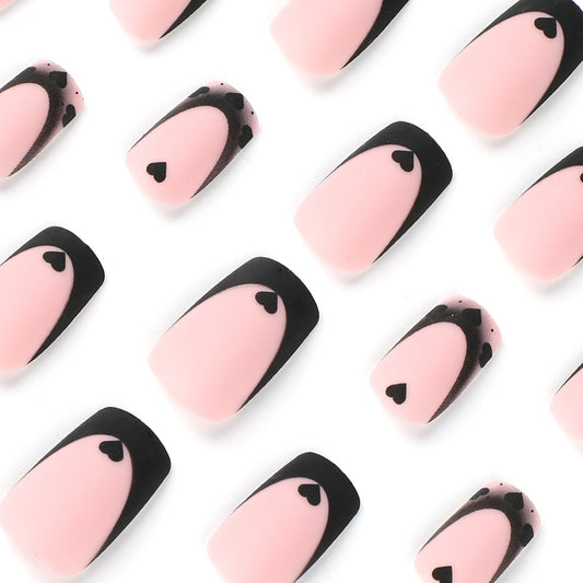 Mad Not Sad Medium Square Black Hearts Press On Nails