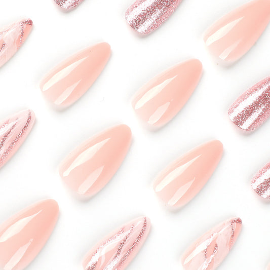 Marble Glitter Games Medium Almond Gold Glam Press On Nails