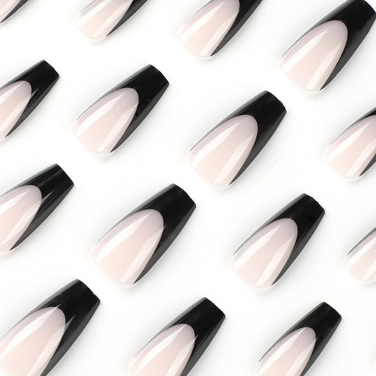 Customer Satisfaction Medium Coffin Black French Tips Press On Nails